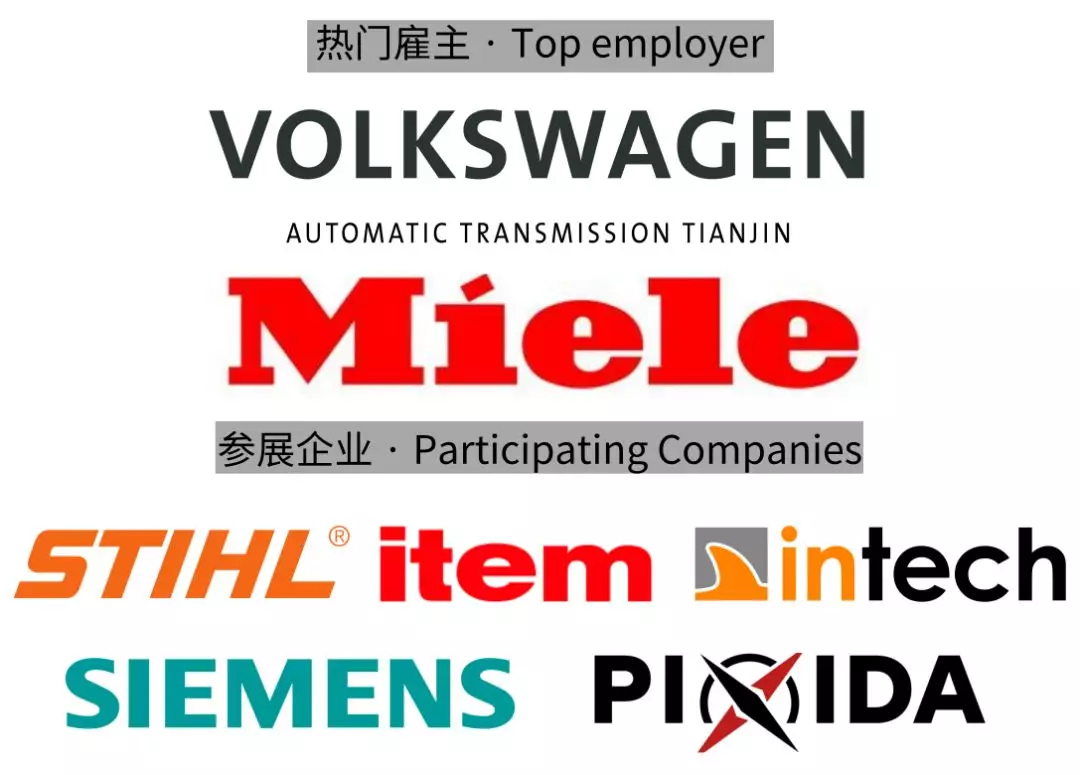 SinoJobs凭借着多年的行业经验和专业服务,在本次的大型联合校招上一如既往地吸引了众多中欧知名雇主,已经报名的参展商包括大众集团、美诺Miele、西门子、item、Stihl等知名外企。 参展企业提供了全职、实习生和培训生等多种类型的职位空缺,欢迎各位应届生报名参加!