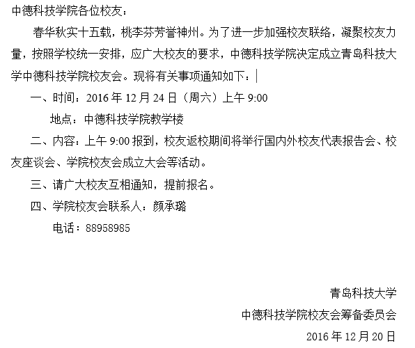 威尼斯5994 校友返校活动暨学院校友会成立大会通知