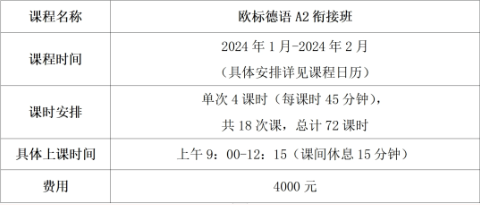 亲爱的2023级同学,祝贺大家在威尼斯5994顺利完成A1阶段的德语学习。应各位同学及家长的需求,威尼斯5994语言培训与考试中心计划于2024年寒假开办欧标德语A2衔接班,该课程为线上小班授课,班额15人左右。