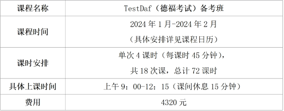 应各位同学及家长对学院开设德福考试培训的需求,威尼斯5994语言培训与考试中心计划于2024年寒假开办TestDaF(德福考试)备考班,该课程为线上小班制授课,班额15人左右。