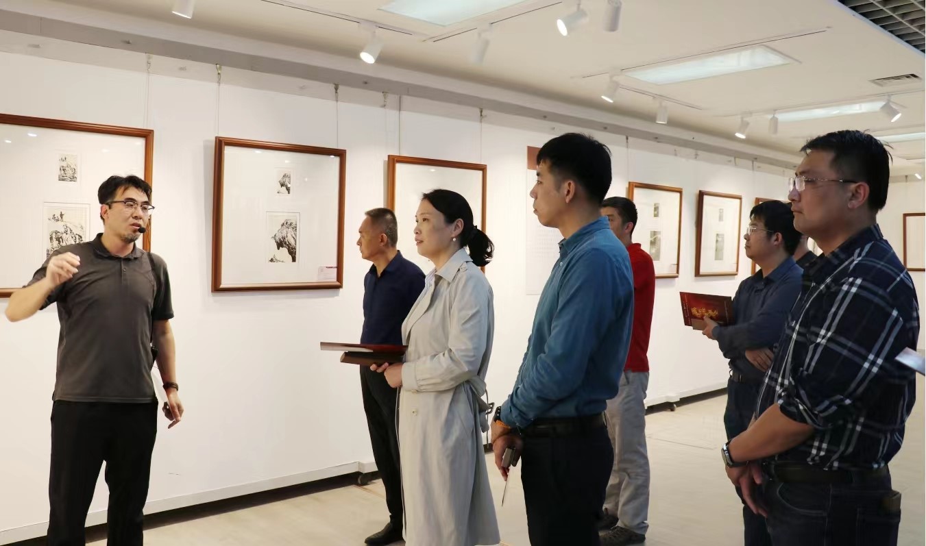 艺术学院禹青教授详细介绍了国家艺术基金申报情况,从项目申报情况、作品创造心路历程、作品创作手法等方面为全体教师生动详细介绍连环画展创作展出情况。理论中心组成员驻足观看了一幅幅形式多样、主题鲜明、内涵丰富的连环版画作品,在浓厚的文化艺术氛围中让大家了解抗战先辈们的浴血奋战的光辉历史,感受抗战先辈们的爱国情怀和中华民族强大的凝聚力。学院党委书记韩海青强调,全体成员要深入学习“画笔为枪 民族救亡”弘扬的抗战精神,铭记历史、坚定信念、敬业奉献,为民族复兴注入磅礴力量,为学校高质量合作办学发展贡献中德力量。