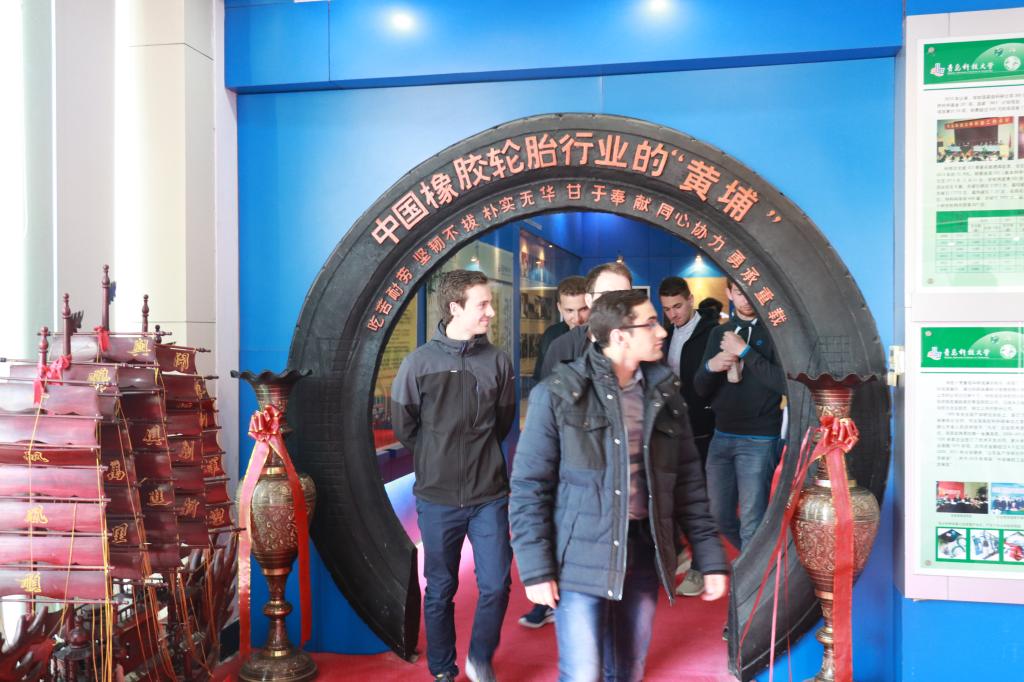 会后,学院组织德国留学生参观校史馆,工作人员为留学生们介绍了学校建校至今的发展历程与成就,培养的各领域杰出人才,以及取得的丰硕的科研成果。留学生们被展览馆内丰富的图文资料、珍贵的历史文献及实物模型所吸引,了解了学校的“科大精神”、“橡胶品格”、“五有理念”,感受到了学校所积淀的历史文化底蕴,更加深刻地了解到学校对社会、国家所做出的重要贡献。