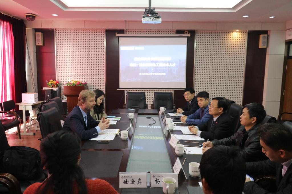 拜尔感谢学校的热情接待,介绍了雷根斯堡市的基本情况以及雷根斯堡工业大学学科特色、人才培养、国际交流与合作、科学研究等情况,表示将会进一步深化与青岛科技大学的交流与合作。
