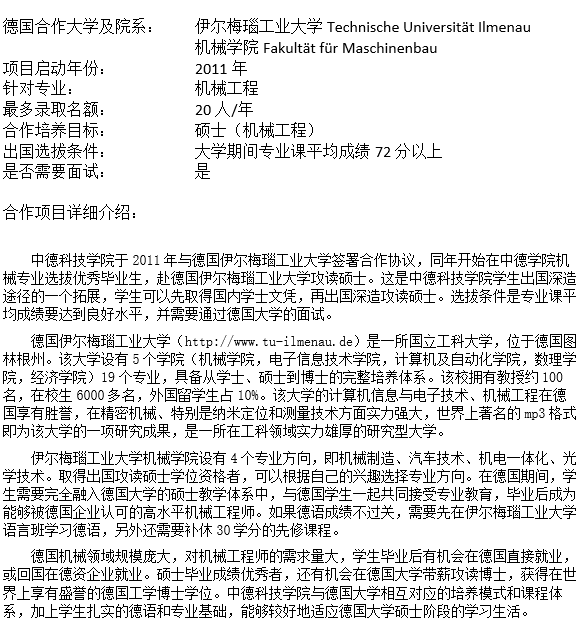 TUI伊尔梅瑙大学研究生合作项目(机械方向)