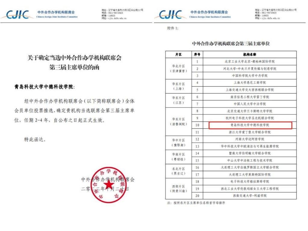 2022年10月学院成功当选中外合作办学机构联席会第三届主席单位。
