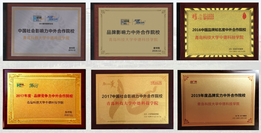 学院多次被央广网、新华网评选为年度“品牌影响力中外合作院校”“品牌竞争力中外合作院校”;获批工信部“中德智能制造人才培养合作试点示范”单位,省教育厅、省人民政府“山东省与德语区国家交流与合作研究中心”,当选中外合作办学机构联席会第三届主席单位。学院德方合作大学帕尔教授、菲尔斯教授、里格拉夫教授、布莱姆泽教授4位教授先后荣获山东省齐鲁友谊奖、山东省人民友好使者、山东省荣誉公民、青岛市贡献奖、青岛市国际合作奖等荣誉称号。